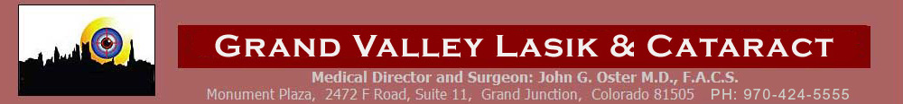 Welcome to Grand Valley LASIK & Cataract. Our medical staff is very happy to work with you. Our surgeon, John Oster, M.D., F.A.C.S., has performed over 25,000 LASIK procedures in the past 16 years. As the medical director of TLC Laser Eye Center in Denver, he has been providing the highest quality vision correction procedures to thousands of patients. Due to strong demand, he is now offering the same great quality and standard of care on the Western Slope. Please browse our website and learn what your opportunities are to improve your vision with our expert care.
